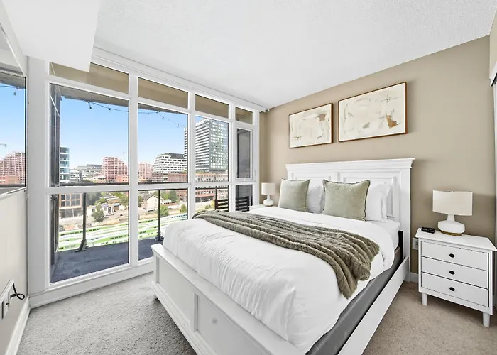 Situado en el barrio del Entretenimiento de Toronto, el Spacious Toronto Condo w Patio - City Comfort se encuentra a una distancia de 700 metros del Estadio Rogers Centre y a poco más de 20 minutos a pie del Coliseo Ricoh, cuya visita recomiendan los aficionados al deporte.